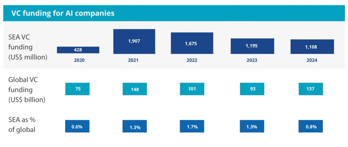 Despite global AI investments exceeding US$100 billion in 2024 (37% of total venture capital funding), Southeast Asia only accounted for around US$137 million. However, the region’s startups are focusing on practical downstream applications, such as customer support automation, content creation, and internal systems, where GenAI can thrive without heavy infrastructure or deep-tech talent.